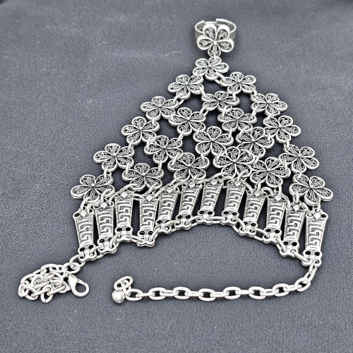 Bratara cu inel din Zamac argintat, model oriental.