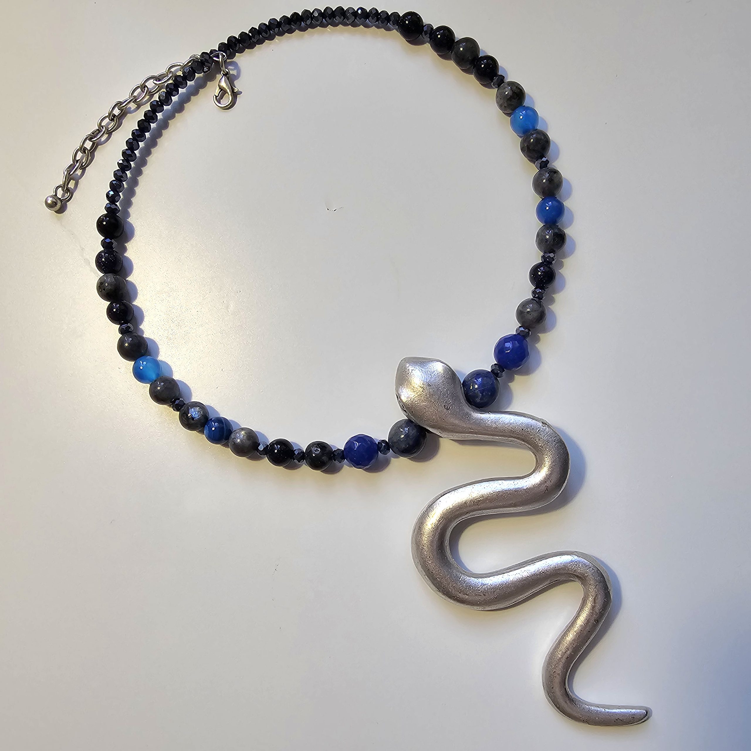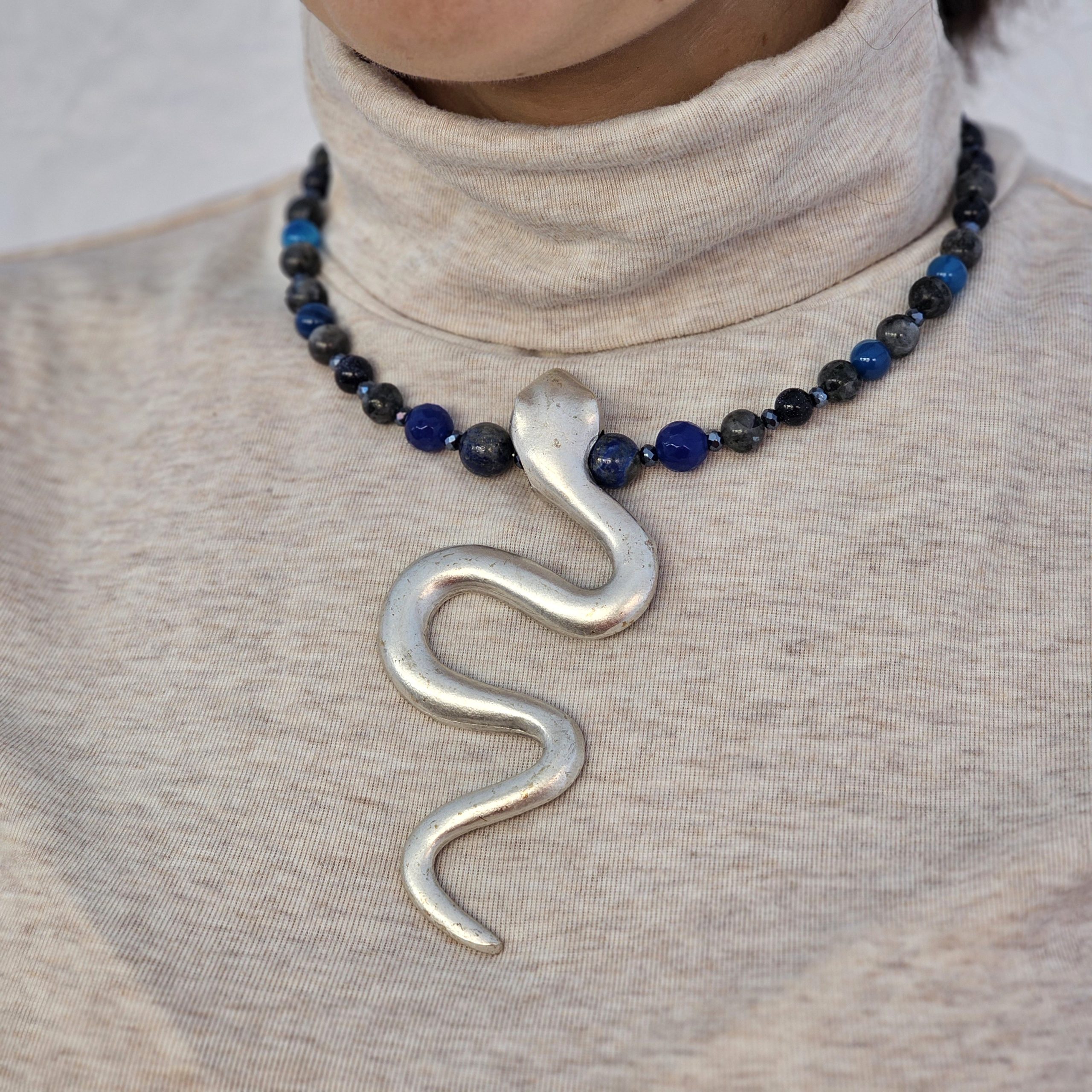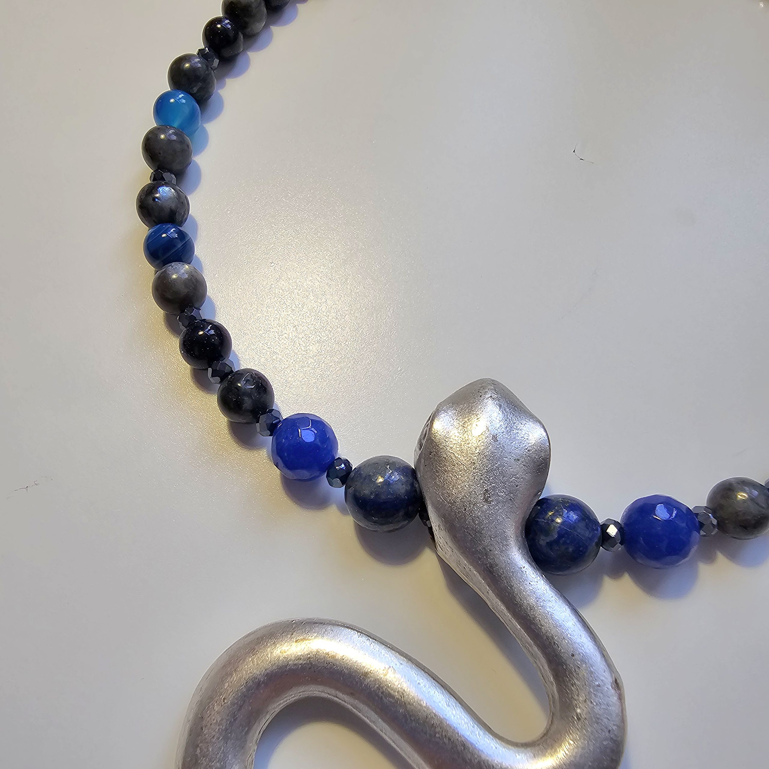 Colier cu pietre semipretioase si pandant din zamac placat cu argint, dimensiune reglabila. Accesorii metalice din zamac placat cu argint.