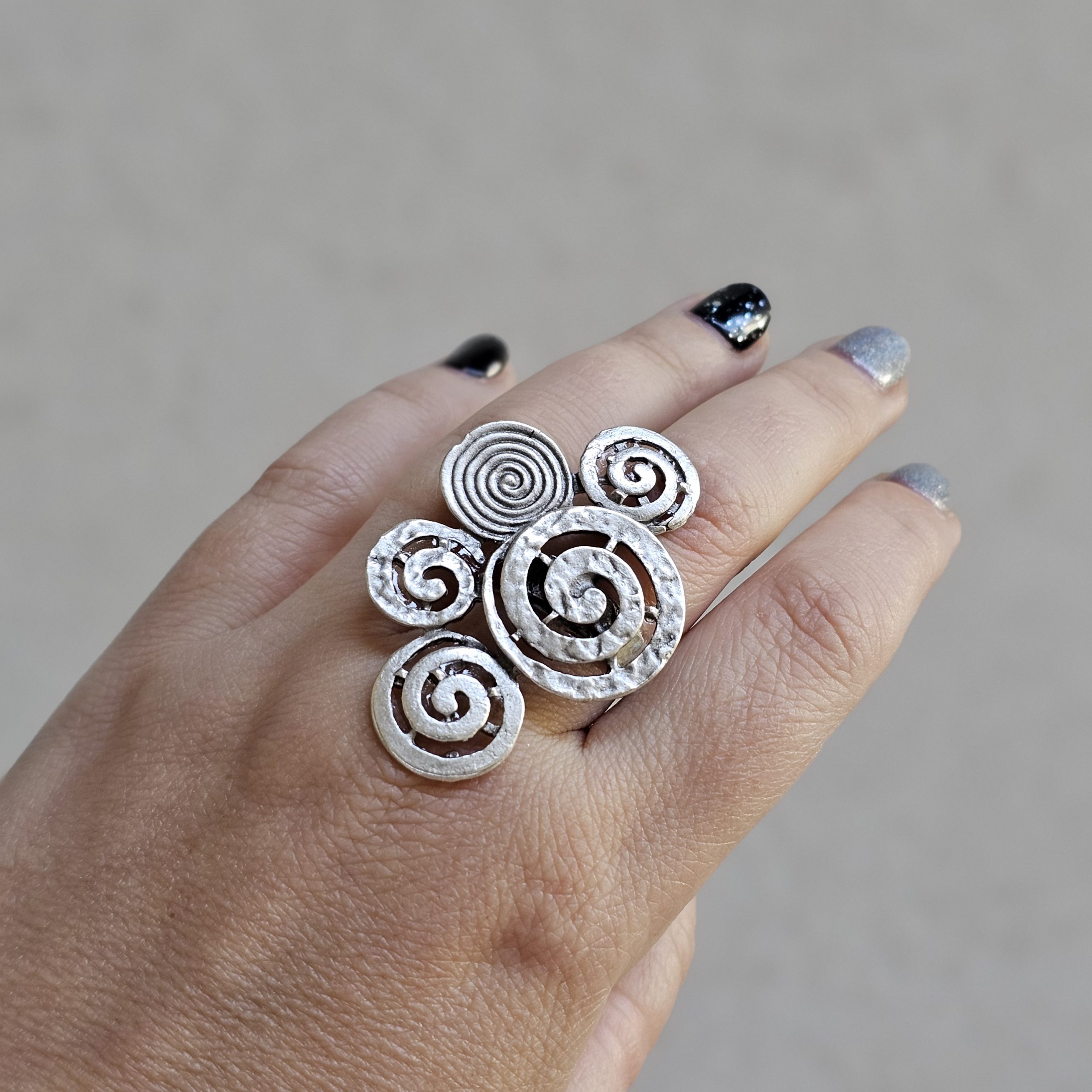 Inel din Zamac placat cu argint cu dimensiune reglabila.